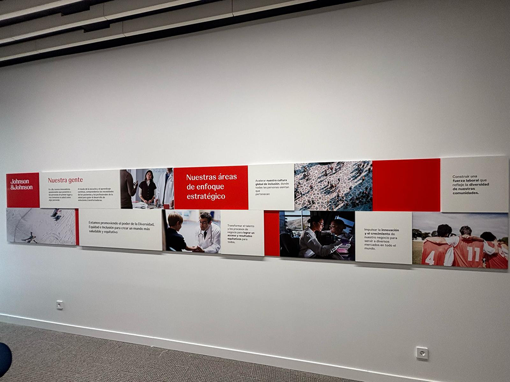 El resultado es una señalética premium, de bajo mantenimiento y máxima durabilidad, que eleva la percepción de profesionalidad y refuerza el posicionamiento corporativo de Johnson & Johnson. El resultado es una señalética de gran impacto visual, diseñada para transmitir innovación, eficiencia y la solidez de la marca Johnson & Johnson en cada detalle